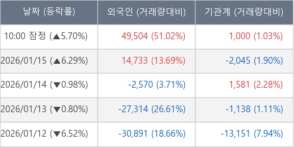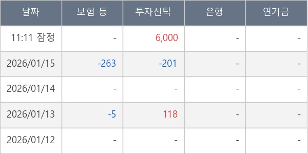 [표] 주요 기관별 순매매량 (단위 주)