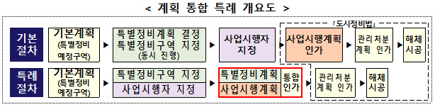 그간 특별정비계획 수립 과정에서 기본계획 변경이 필요한 경우 기본계획을 변경한 후 특별정비계획을 수립해야 함에 따라 주민 공람 등 행정절차를 반복해서 진행해야 했다. 이에 개정안은 기본계획 및 특별정비계획의 수립·변경에 필요한 행정절차를 동시에 진행할 수 있는 근거를 마련했다.