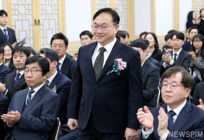 [서울=뉴스핌] 정일구 기자 = 박영재 신임 법원행정처장이 16일 오전 서울 서초구 대법원에서 열린 취임식에 참석하고 있다. 2026.01.16 mironj19@newspim.com