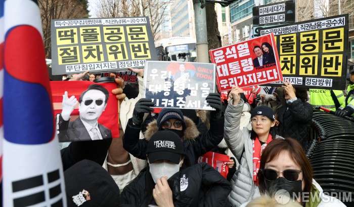 법원 앞에 모인 윤석열 전 대통령 지지자들