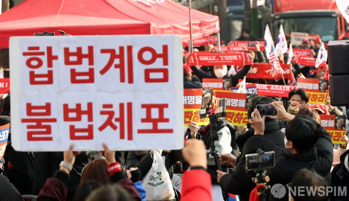 [서울=뉴스핌] 정일구 기자 = 윤석열 전 대통령의 체포방해 등 혐의 사건에 대한 1심 선고기일인 16일 오후 서울 서초구 서울중앙지방법원 앞에서 윤 전 대통령 지지자들이 선고 결과가 나오자 항의하고 있다. 서울중앙지법 형사합의35부(부장판사 백대현)는 이날 특수공무집행방해 등의 혐의로 기소된 윤 전 대통령에게 징역 5년을 선고했다. 2026.01.16 mironj19@newspim.com