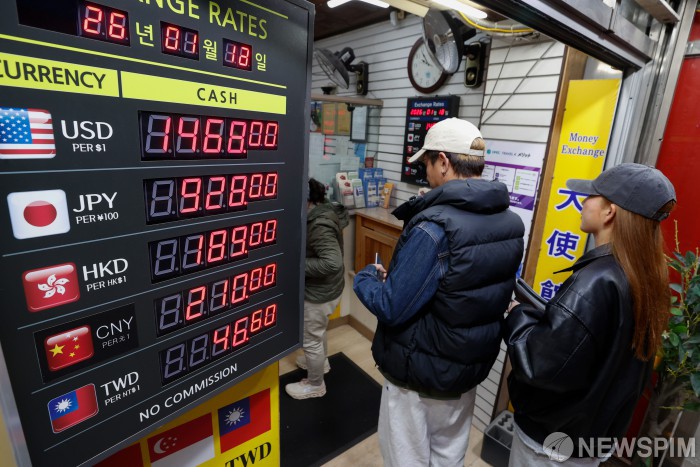 [서울=뉴스핌] 류기찬 기자 = 정부가 외환시장 안정을 위해 잇달아 내놓은 정책에도 달러/원 환율이 다시 1480원대를 넘보고 있는 가운데 18일 오전 서울 중구 명동 환전소에 환율 시세가 표시되고 있다. 2026.01.18 ryuchan0925@newspim.com