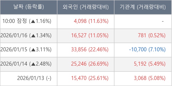 [표] 외국인ㆍ기관 순매매량 (단위 주)
