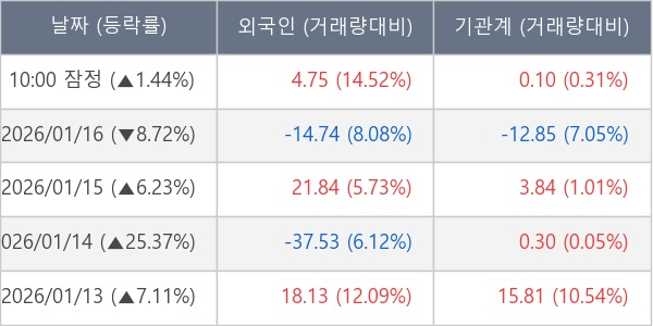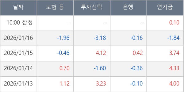 [표] 주요 기관별 순매매량 (단위 만주)