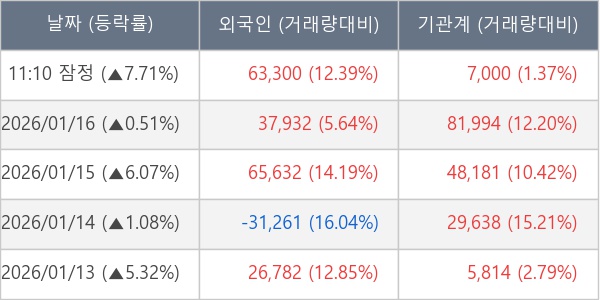 [표] 외국인ㆍ기관 순매매량 (단위 주)