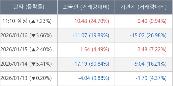 [표] 외국인ㆍ기관 순매매량 (단위 만주)