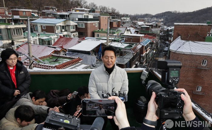 [서울=뉴스핌] 양윤모 기자 = 오세훈 서울시장이 19일 오전 관악구 신림동 675 일대 재개발 현장을 찾아 메세지를 발표하고 있다. 2026.01.19 yym58@newspim.com