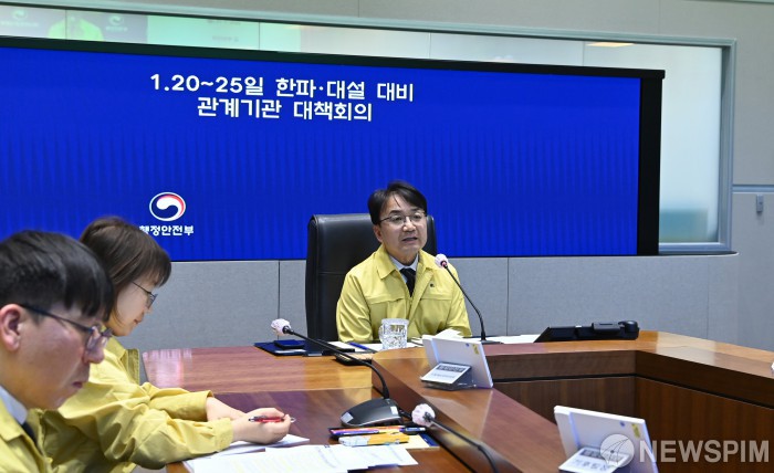 [서울=뉴스핌] 김광용 행정안전부 재난안전관리본부장이 19일 정부서울청사 상황실에서 ‘1.20~25일 한파·대설 대비 관계기관 대책회의’를 주재하며, 기관별 대비 상황을 점검하고 있다. [사진=행정안전부] 2026.01.19 photo@newspim.com