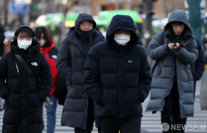 [서울=뉴스핌] 정일구 기자 = 서울 전역에 한파주의보가 발효된 가운데 절기상 가장 춥다는 대한(大寒)인 20일 오전 서울 종로구 광화문네거리에서 두꺼운 옷을 입은 시민들이 발걸음을 옮기고 있다. 2026.01.20 mironj19@newspim.com