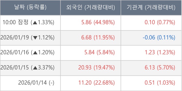 [표] 외국인ㆍ기관 순매매량 (단위 만주)