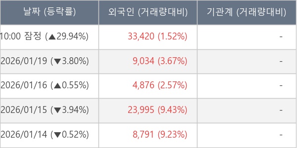 [표] 외국인ㆍ기관 순매매량 (단위 주)
