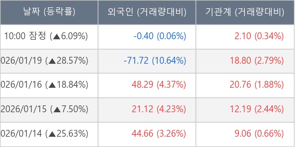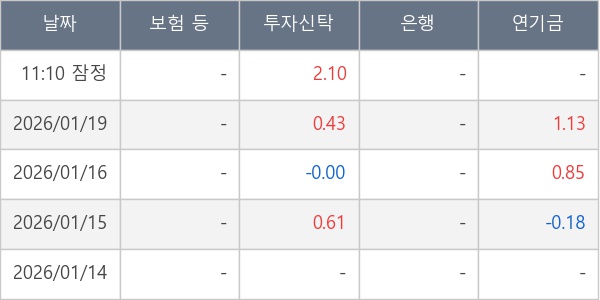 [표] 주요 기관별 순매매량 (단위 만주)