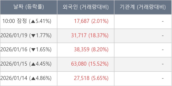 [표] 외국인ㆍ기관 순매매량 (단위 주)