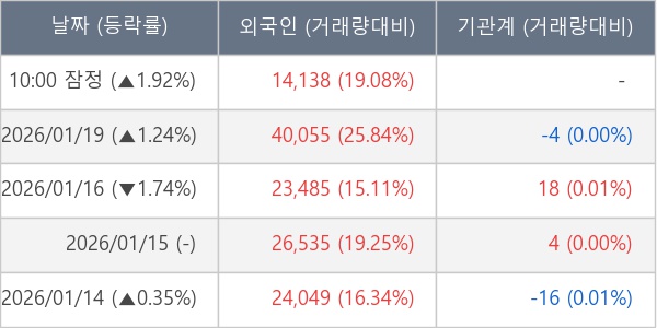 [표] 외국인ㆍ기관 순매매량 (단위 주)