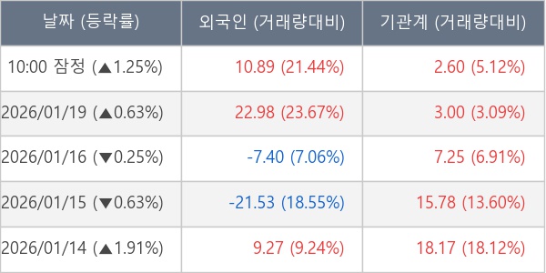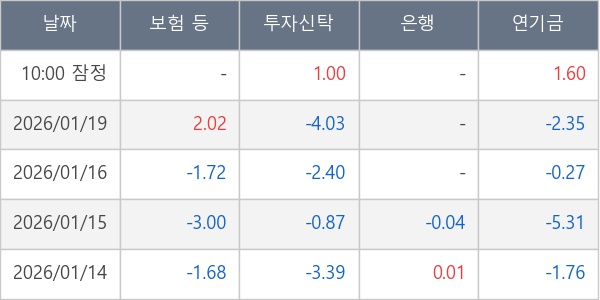 [표] 주요 기관별 순매매량 (단위 만주)