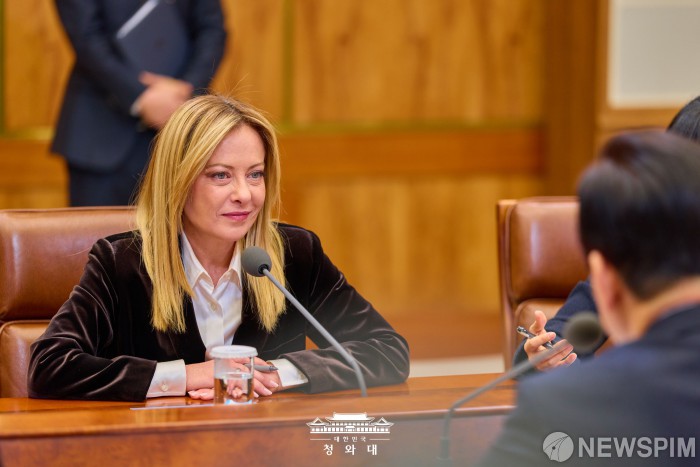 [서울=뉴스핌] 조르자 멜로니 이탈리아 총리가 지난 19일 오전 청와대에서 열린 정상회담 한-이탈리아 정상회담에 자리하고 있다. [사진=청와대] 2026.01.20 photo@newspim.com