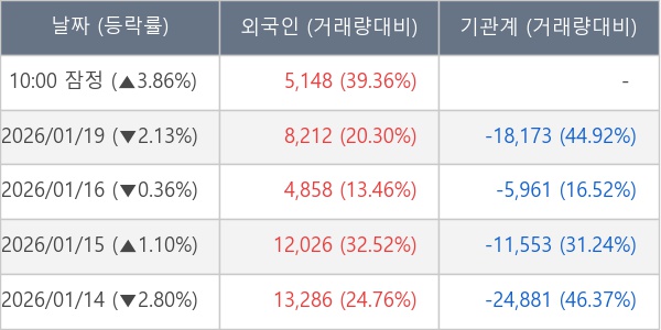 [표] 외국인ㆍ기관 순매매량 (단위 주)