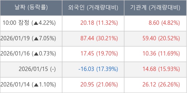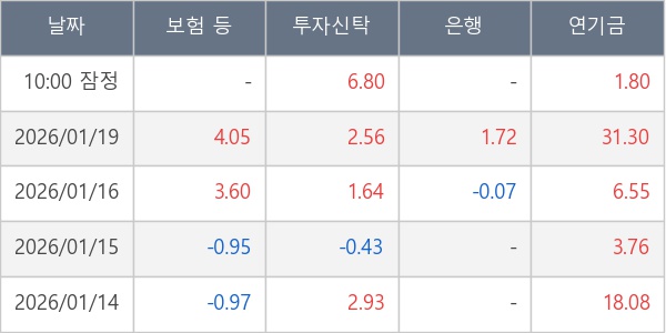 [표] 주요 기관별 순매매량 (단위 만주)