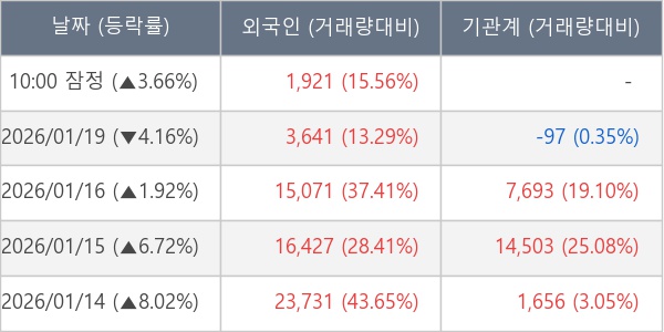 [표] 외국인ㆍ기관 순매매량 (단위 주)