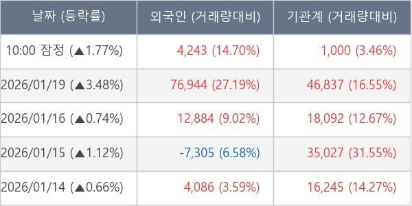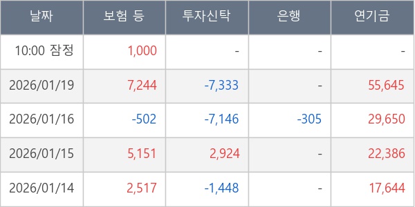 [표] 주요 기관별 순매매량 (단위 주)