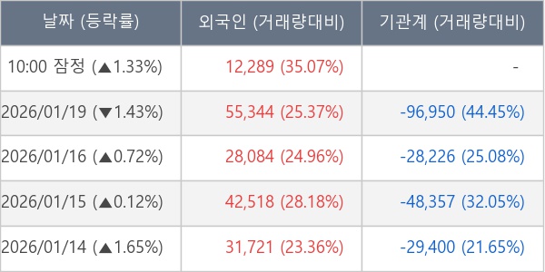 [표] 외국인ㆍ기관 순매매량 (단위 주)