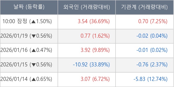 [표] 외국인ㆍ기관 순매매량 (단위 만주)