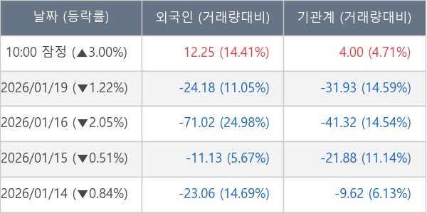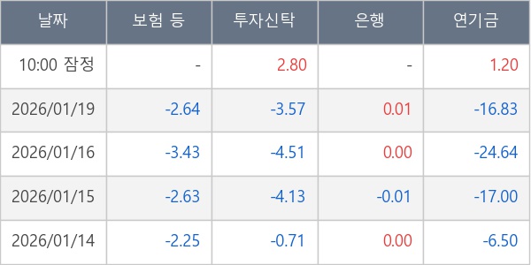 [표] 주요 기관별 순매매량 (단위 만주)