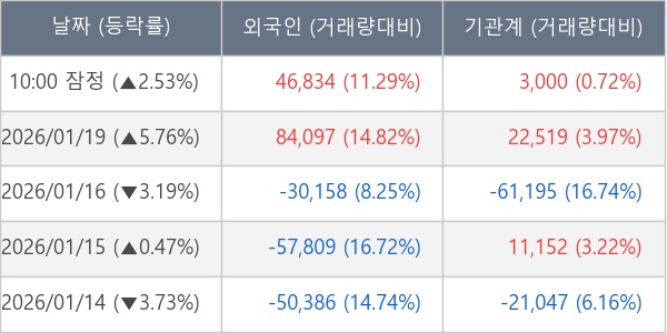 [표] 외국인ㆍ기관 순매매량 (단위 주)