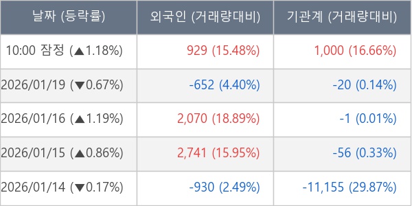 [표] 외국인ㆍ기관 순매매량 (단위 주)