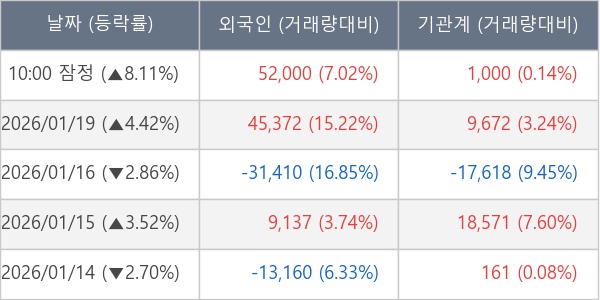 [표] 외국인ㆍ기관 순매매량 (단위 주)