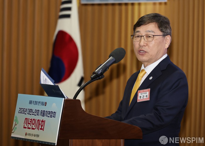 [서울=뉴스핌] 양윤모 기자 = 정근식 서울시 교육감이 20일 오전 서울시청 다목적홀에서 개최된 '2026년 대한노인회 서울연합회 신년인사회' 행사에 참석해 축사를 하고 있다. 행사에는 오세훈 서울시장,고광선 대한노인회 서울시연합회장,최호정 서울시의회 의장, 정근식 서울시 교육감등 300여명이 참석했다. 2026.01.20 yym58@newspim.com