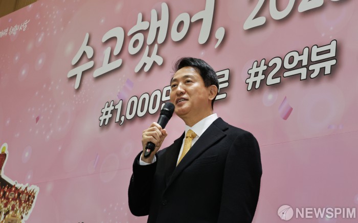 [서울=뉴스핌] 양윤모 기자 = 오세훈 서울시장이 20일 '2025 서울윈터페스타'의 운영 성과를 공유하기 위한 간담회 '수고했어, 2025 서울윈터페스타'에서 참석해 인사말을 하고 있다.이날 행사에는 오세훈 서울시장을 비롯해 윈터페스타에 참여한 기관 관계자, 축제 감독, 행사 참여 시민 등 50여명이 참석했다. 2026.01.20 yym58@newspim.com