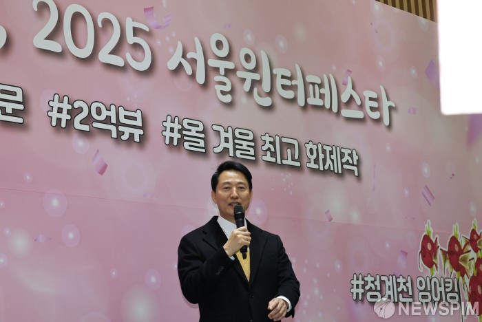 [서울=뉴스핌] 양윤모 기자 = 오세훈 서울시장이 20일 '2025 서울윈터페스타'의 운영 성과를 공유하기 위한 간담회 '수고했어, 2025 서울윈터페스타'에서 참석해 인사말을 하고 있다. 이날 행사에는 오세훈 서울시장을 비롯해 윈터페스타에 참여한 기관 관계자, 축제 감독, 행사 참여 시민 등 50여명이 참석했다. 2026.01.20 yym58@newspim.com