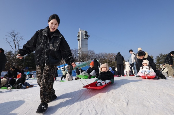 고사리손으로 썰매를 끌거나 튜브 썰매를 타고 내려오는 아이들의 얼굴에는 매서운 추위도 잊은 채 웃음꽃이 활짝 피었다.