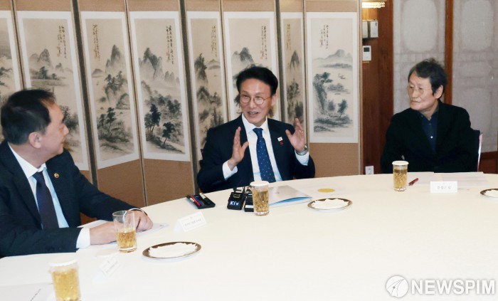 [서울=뉴스핌] 이길동 기자 = 김민석 국무총리가 20일 서울 종로구 삼청동 총리공관에서 열린 연극인 간담회에서 발언하고 있다. 2026.01.20 gdlee@newspim.com