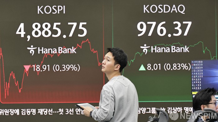 [서울=뉴스핌] 양윤모 기자 = 20일 오후 코스피가 전장 종가보다 18.91 포인트(0.39%) 하락하며 4885.75로, 코스닥은 8.01 포인트(0.83%) 상승한 976.37로 장을 마감한 가운데, 서울 중구 하나은행본점 딜링룸에서 직원들이 업무를 보고 있다. 서울외환시장에서 달러/원 환율은 전장 대비 5.00원 상승한 1478.70원에 주간거래를 마감했다. 2026.01.20 yym58@newspim.com