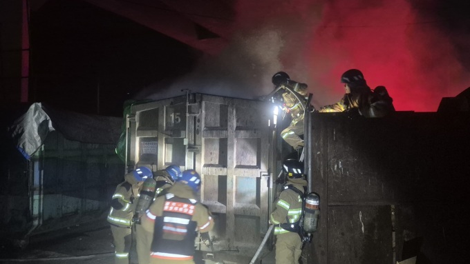 소방당국에 따르면 이날 오후 6시 35분경 인근을 지나던 시민이 암롤박스 상부에서 연기가 발생하는 것을 발견해 119에 신고했다. 신고를 받고 출동한 소방당국은 인력 38명과 장비 14대를 투입해 오후 7시 29분경 불길을 완전히 잡았다.