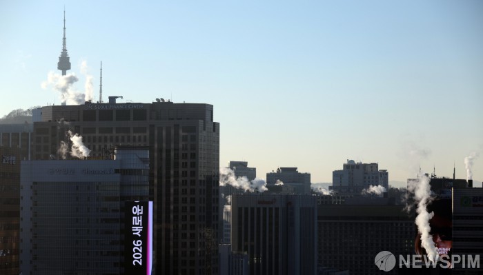 [서울=뉴스핌] 이길동 기자 = 서울 아침 기온이 영하 13도까지 떨어지는 등 전국에 강추위가 계속되는 가운데 21일 오전 서울 시내 건물들이 난방 수증기를 내뿜고 있다.2026.01.21gdlee@newspim.com