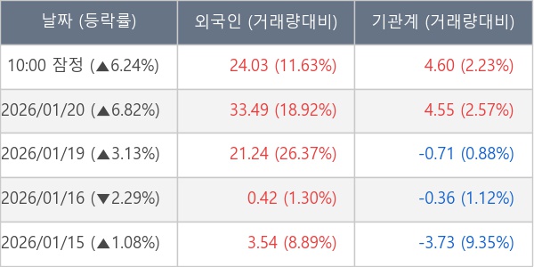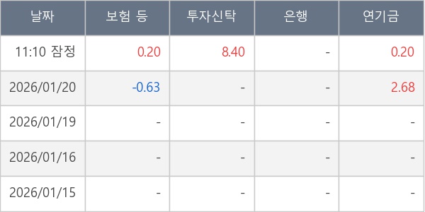 [표] 주요 기관별 순매매량 (단위 만주)