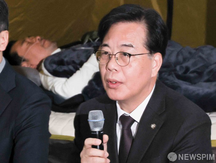 [서울=뉴스핌] 윤창빈 기자 = 송언석 국민의힘 원내대표가 22일 서울 여의도 국회 로텐더홀에서 열린 최고위원회의에서 모두발언을 하고 있다. 2026.01.22 pangbin@newspim.com
