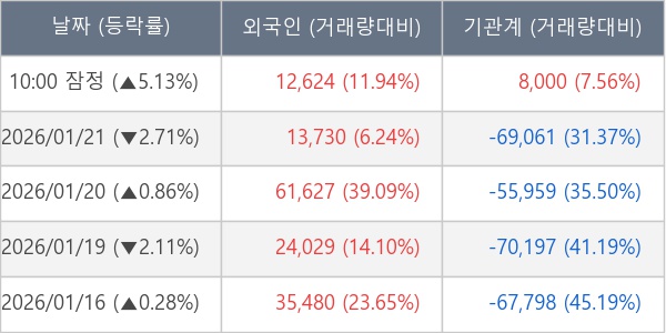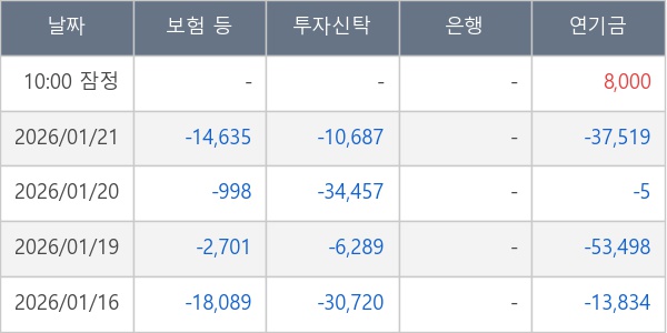 [표] 주요 기관별 순매매량 (단위 주)