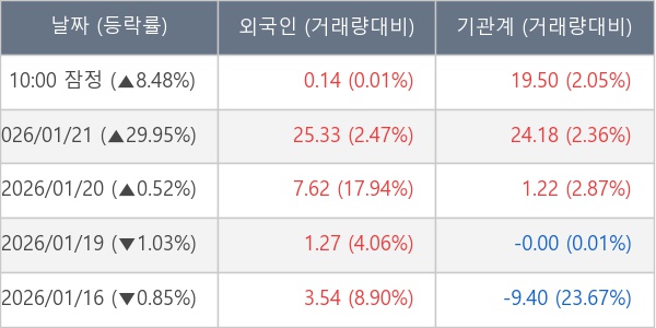 ※ 사모펀드 등 일부 기관의 순매매량은 표시되지 않음
