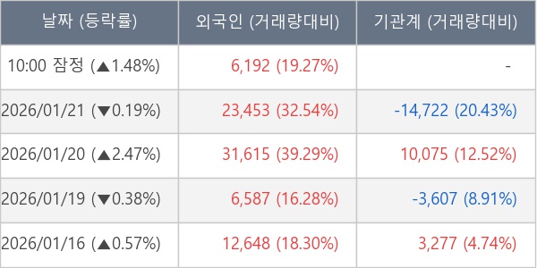 [표] 외국인ㆍ기관 순매매량 (단위 주)