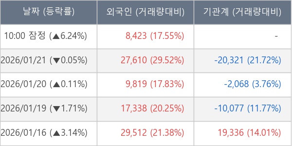 [표] 외국인ㆍ기관 순매매량 (단위 주)