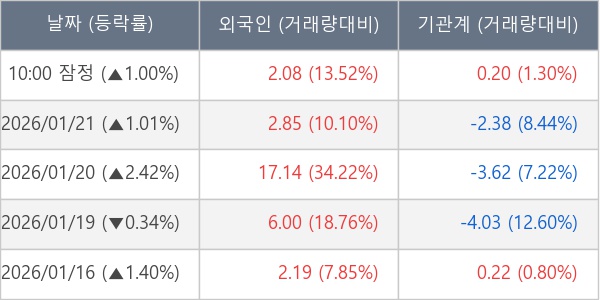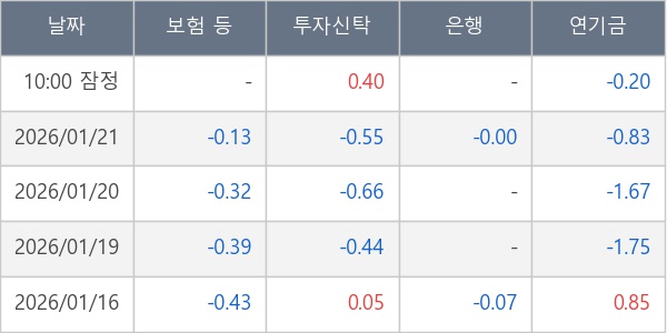 [표] 주요 기관별 순매매량 (단위 만주)