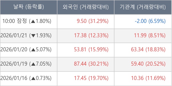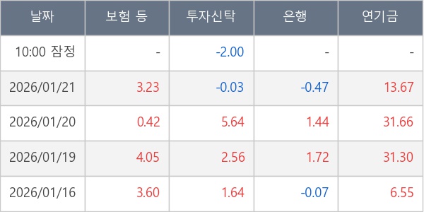 [표] 주요 기관별 순매매량 (단위 만주)