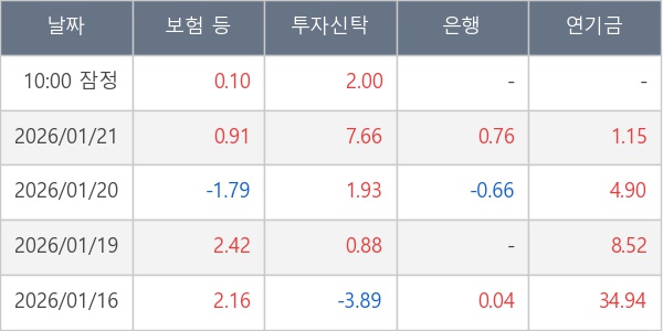 [표] 주요 기관별 순매매량 (단위 만주)