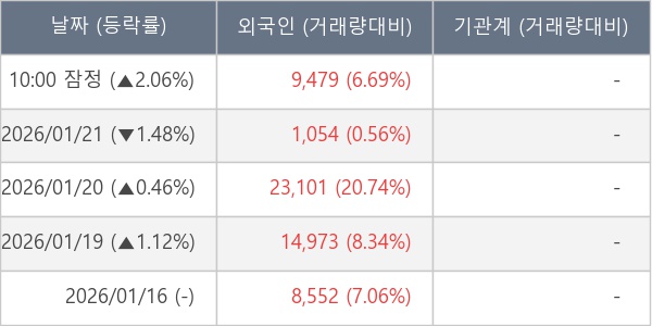 [표] 외국인ㆍ기관 순매매량 (단위 주)