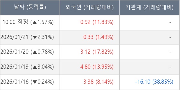 [표] 외국인ㆍ기관 순매매량 (단위 만주)