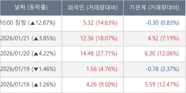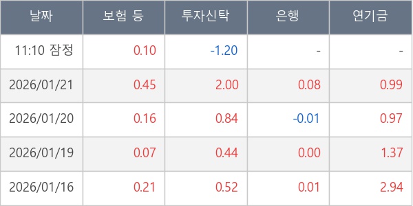 [표] 주요 기관별 순매매량 (단위 만주)